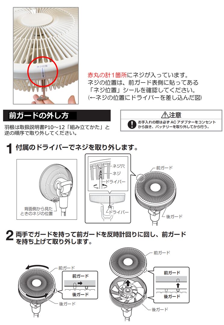 Q.ファンの前ガードが外れない。ファン裏側のネジの位置がわからない。